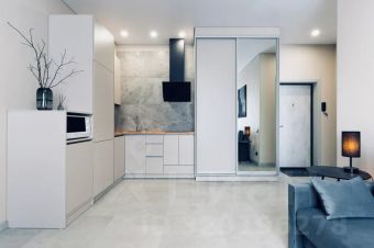Кухня-микроволновая печь,плита,посудомоечная машина,кофеварка,вся необходимая посуда и приборы .Большой раскладной диван фирмы "Аскона",кондиционер , телевизор.