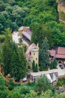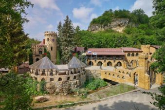 Отель "Замок" расположен в Кисловодске. Отель расположен на территории гостинично-ресторанного комплекса "Замок коварства и любви", в 4 км от центра города Кисловодска, в ущелье реки Аликоновка, среди скал и гор. В пешей доступности находится маршрут по ущелью реки Аликоновка к "Медовым водопадам", а также скала "Замок коварства и любви". В окрестностях расположены: источник сульфатного нарзана, "Старое городское озеро", "Комсомольский парк". Отель находится на территории с прямым доступом к пешеходным и велосипедным маршрутам. Отель занимает два корпуса, построенные с использованием деревянных балок и натурального камня. Гости могут воспользоваться рестораном с камином, сигарной комнатой с камином и банкетным залом с биокамином. Имеются дополнительные зоны отдыха на территории — костровая зона с очагом и пруд с живой форелью и осётром. Предлагается рыбалка. Интерьер в номерах стилизован под шале. В каждом номере имеется ванная комната, халаты, тапочки, телевизор, холодильник, чайная станция и Wi-Fi. Каждый номер имеет панорамный вид из окон на горы и скалы. Семь номеров оборудованы выходом на террасу с мебелью. Четыре номера оснащены электрическими каминами. Отель "Замок" расположен в Кисловодске. Отель расположен на территории гостинично-ресторанного комплекса "Замок коварства и любви", в 4 км от центра города Кисловодска, в ущелье реки Аликоновка, среди скал и гор. В пешей доступности находится маршрут по ущелью реки Аликоновка к "Медовым водопадам", а также скала "Замок коварства и любви". В окрестностях расположены: источник сульфатного нарзана, "Старое городское озеро", "Комсомольский парк". Отель находится на территории с прямым доступом к пешеходным и велосипедным маршрутам. Отель занимает два корпуса, построенные с использованием деревянных балок и натурального камня. Гости могут воспользоваться рестораном с камином, сигарной комнатой с камином и банкетным залом с биокамином. Имеются дополнительные зоны отдыха на территории — костровая зона с очагом и пруд с живой форелью и осётром. Предлагается рыбалка. Интерьер в номерах стилизован под шале. В каждом номере имеется ванная комната, халаты, тапочки, телевизор, холодильник, чайная станция и Wi-Fi. Каждый номер имеет панорамный вид из окон на горы и скалы. Семь номеров оборудованы выходом на террасу с мебелью. Четыре номера оснащены электрическими каминами.