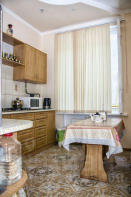 Аппартаменты "Стандарт" представляет собой уютную комнату площадью 22 м, в комнате двухспальная кровать, две тумбочки, небольшой диван, стол, стулья, холодильник, телевизор с DVD-проигрывателем. Душ и туалет - в комнате. Для удобства гостей имеется оборудованная кухня с газовой плитой и необходимой посудой, электрочайник, свч-печь, стиральная машина.