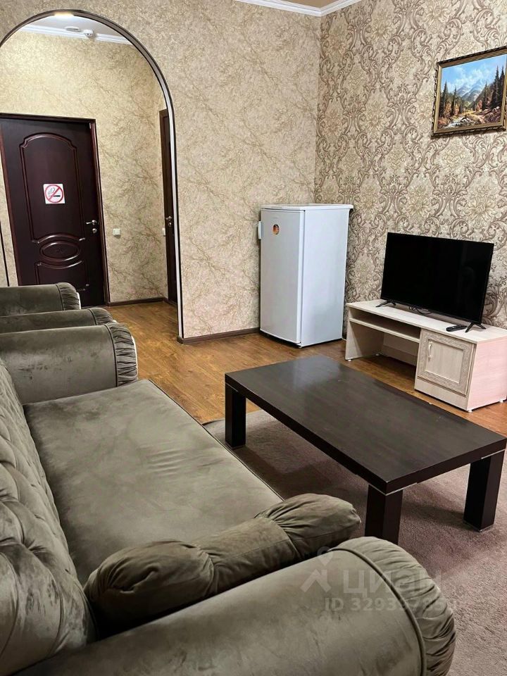 Двуспальная кровать, плазменный телевизор, журнальный столик, холодильник, кондиционер, телефон, санузел с душевой кабиной.