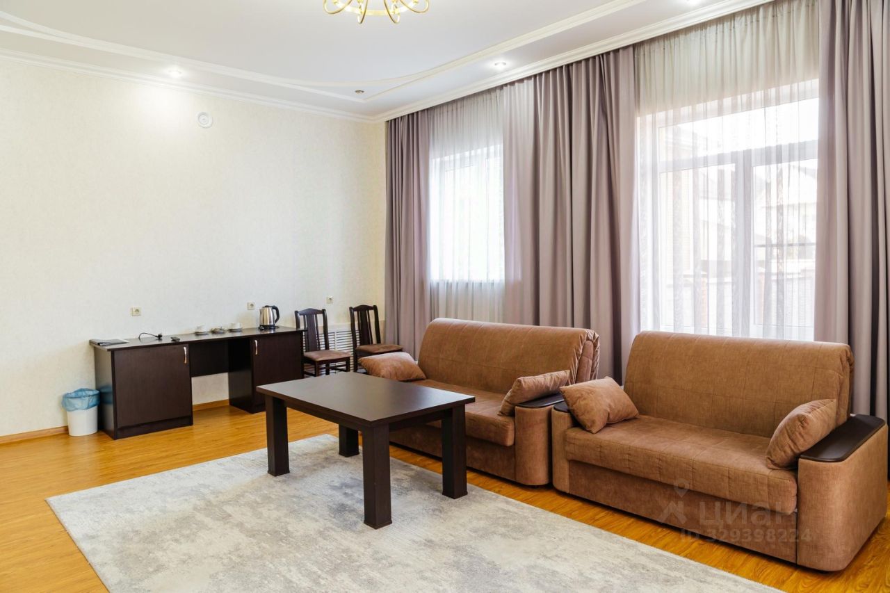 Большой двухкомнатный Люкс 75кв.м. в котором есть спальня, гостинная. Номер оборудован всем необходимым для комфортного пребывания 2-4 человек или семьи с детьми. В номере можно добавить детскую кроватку . В номере есть бесплатный чай, сахар, столовые приборы . Комплектация номера : WI-FI , двуспальная кровать. , большой диван ЖК телевизор, 2 шкафа с вешалками , прикроватные тумбочки , журнальный столик, холодильник, чайник и набор чайных принадлежностей , фен,халат. тапочки, полотенца и гигиенические принадлежности.