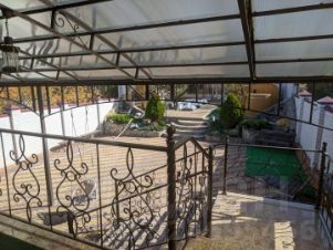 Дополнительно есть вторая кухня . Зона отдыха на террасе и внизу со столом для большой компании. Уютный двор с декоративным водопадом и парковочным местом для двух авто.