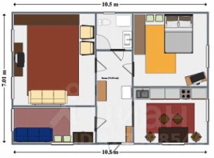 - 3 жилые комнаты, в каждой спальное место для 2 человек.
