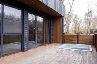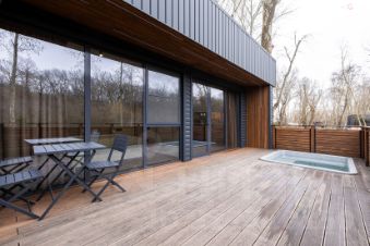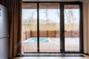 Приватная терраса, где установлена теплая джакузи идеально для вечернего релакса под звуки природы.