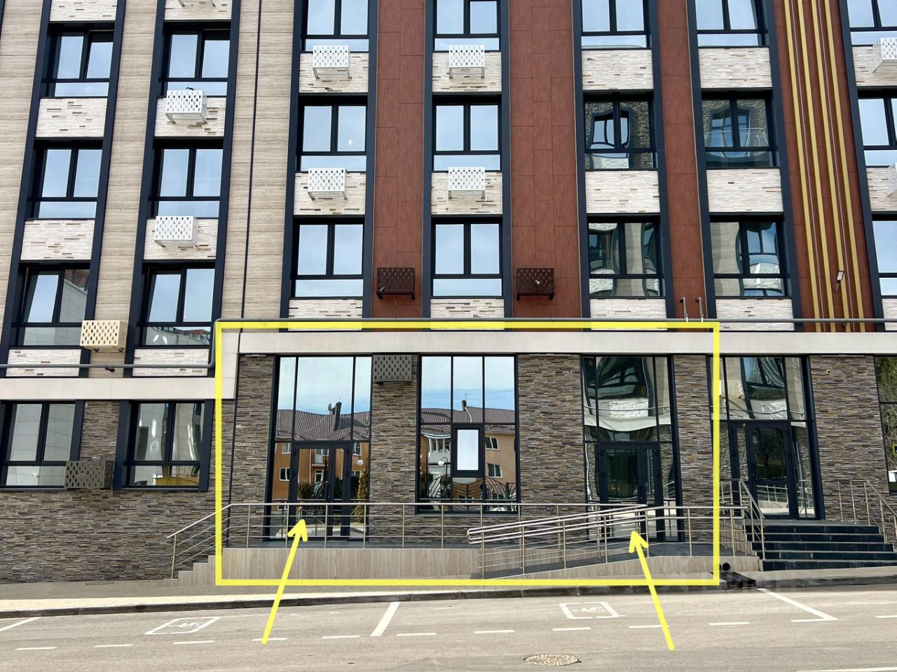 • Фасад: 3 витража + 2 входа (всего 4 витража) — отличная визуальная доступность бизнеса
