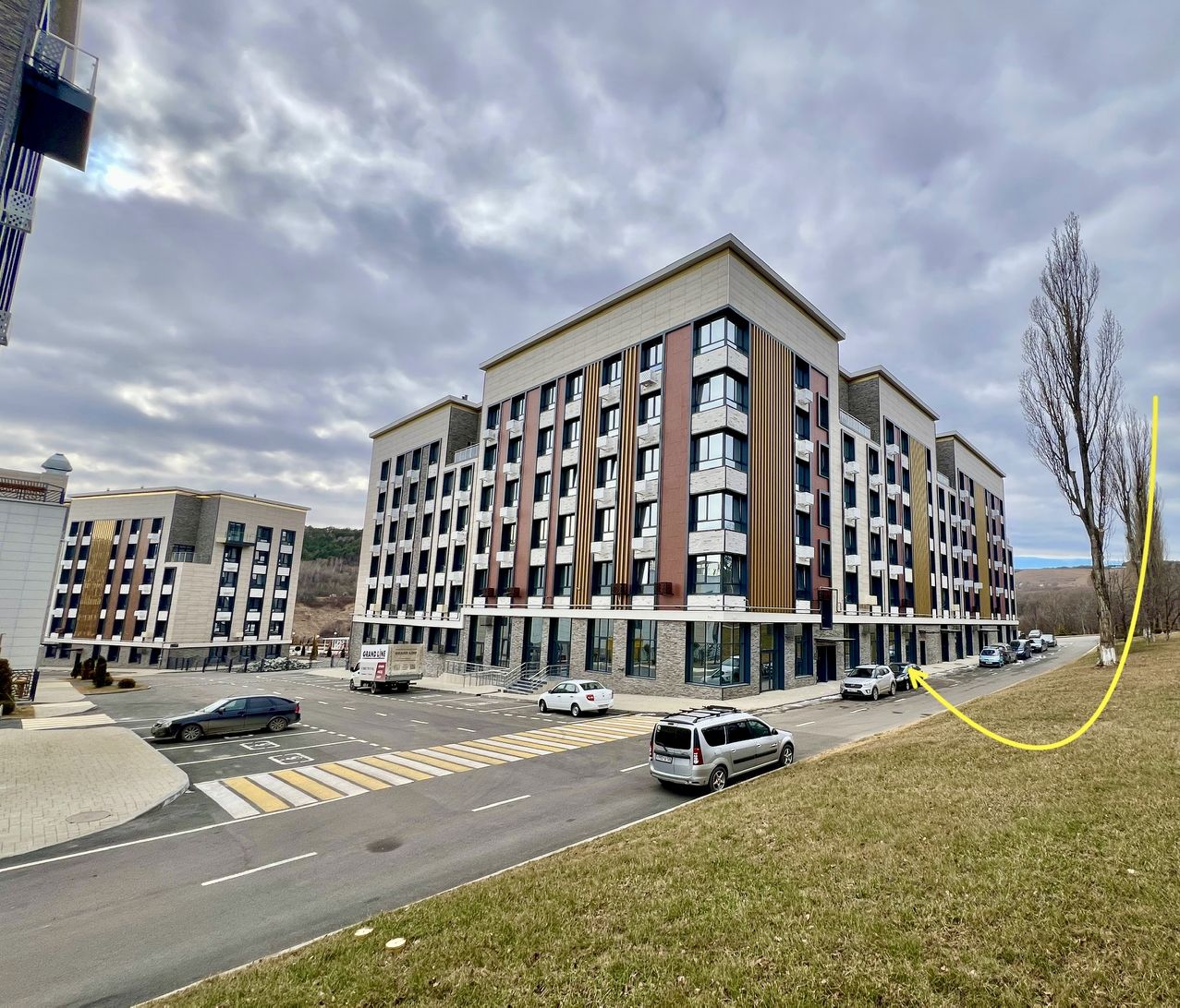Помещение расположено прямо на основном въезде в жилой комплекс — максимальная заметность и удобный заезд для клиентов.