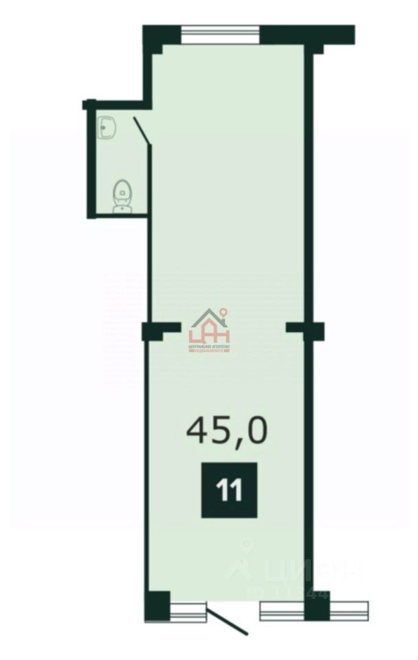 Помещение площадью 45 кв м с ремонтом и санузлом. Есть арендаторы.
