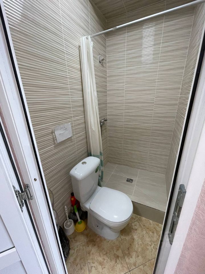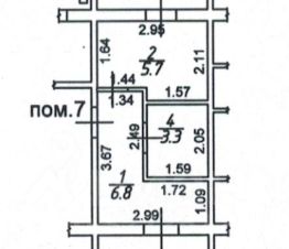 Цокольный этаж, но фактически первый, высокий вход с крыльцом, две раздельные комнаты по 13 кв.м., отдельный санузел.