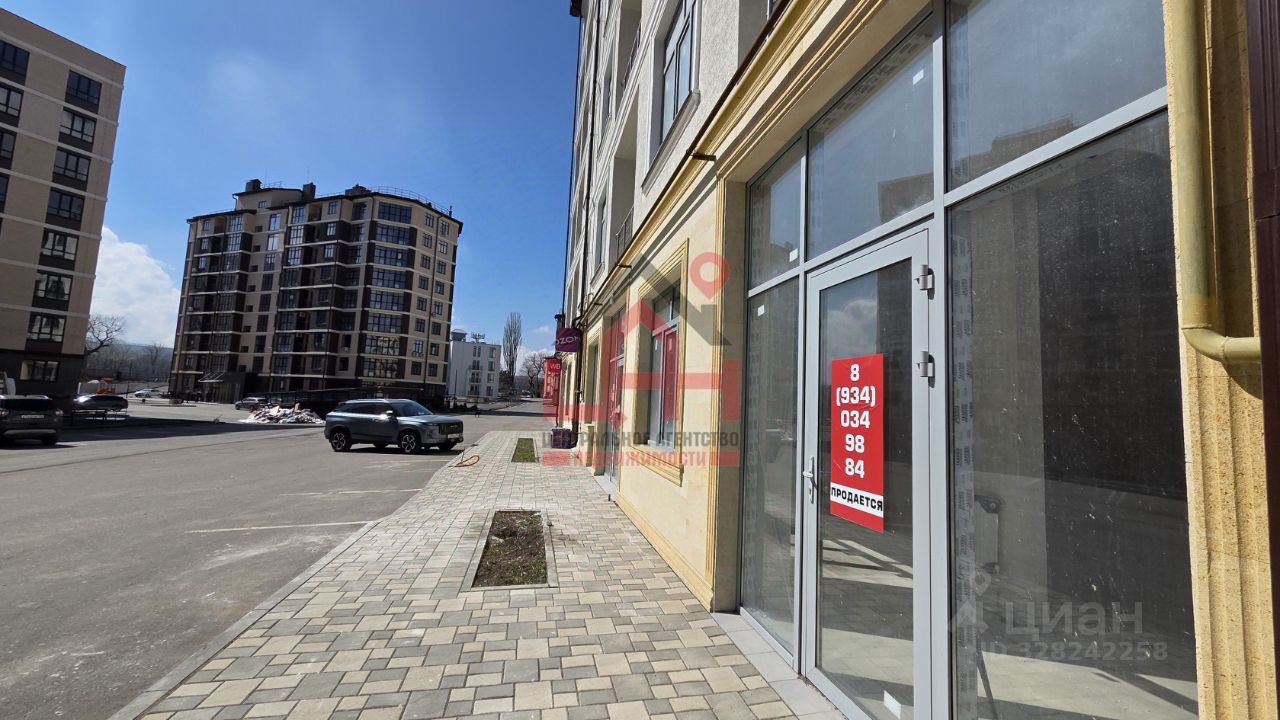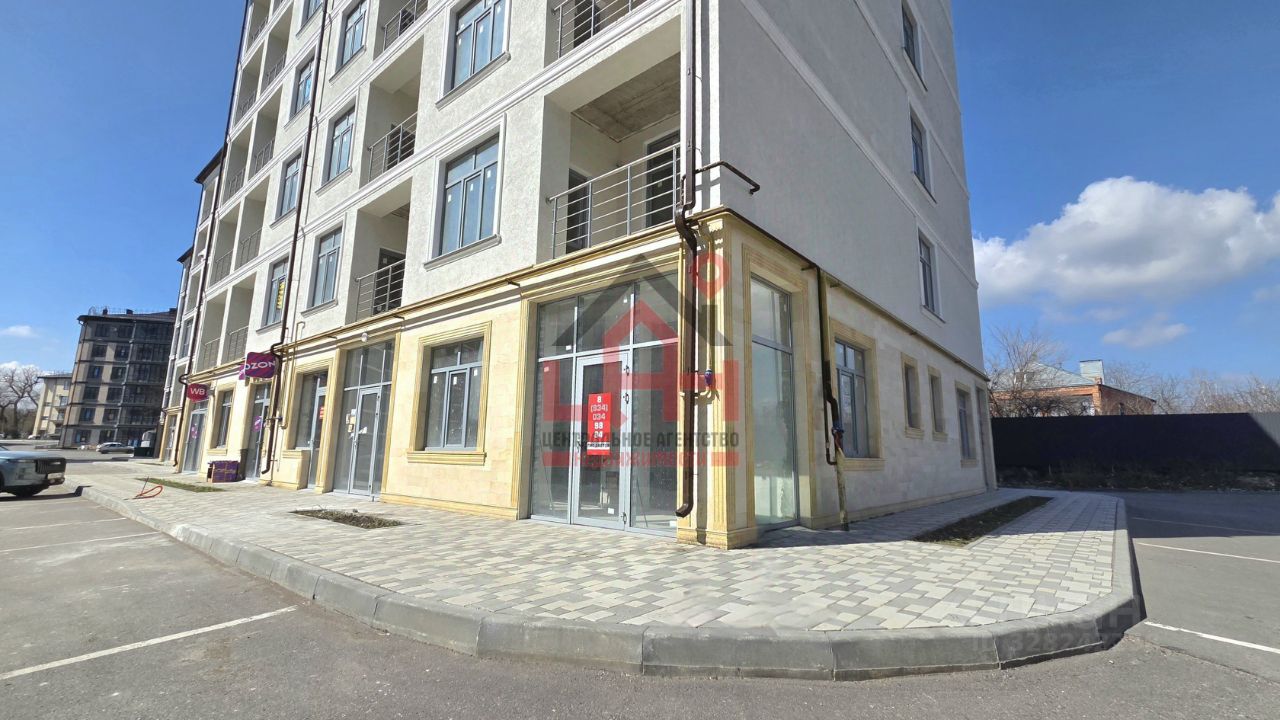 Дом 6-ти этажный. На первом этаже коммерция. Фасад отделан дагестанским камнем. Алюминиевые окна. Помещение угловое хорошо просматривается со всех сторон ЖК. Предчистовая отделка.