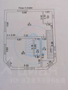 Третий этаж включает два гостиничных номера площадью 26,3 м2 и 35,9 м2.
