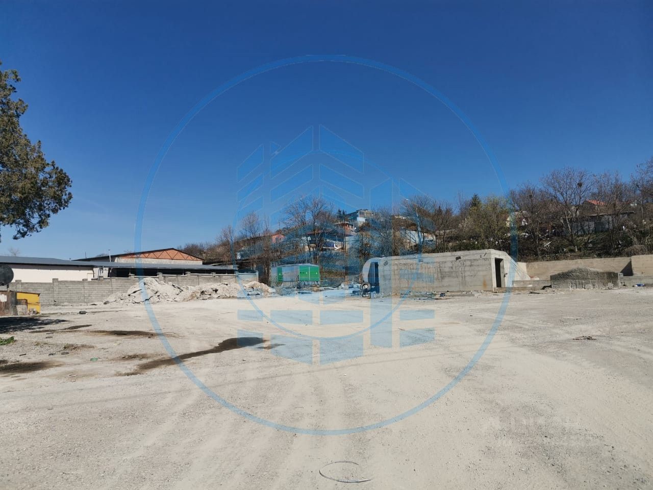 Огороженная территория 8000 кв. м, на которой расположена проходная с кабинетом, двухэтажное административное здание площадью 700 кв.м с подвальными помещениями, не дострой из монолитного железобетона 20% готовности площадью 1000 кв. м.