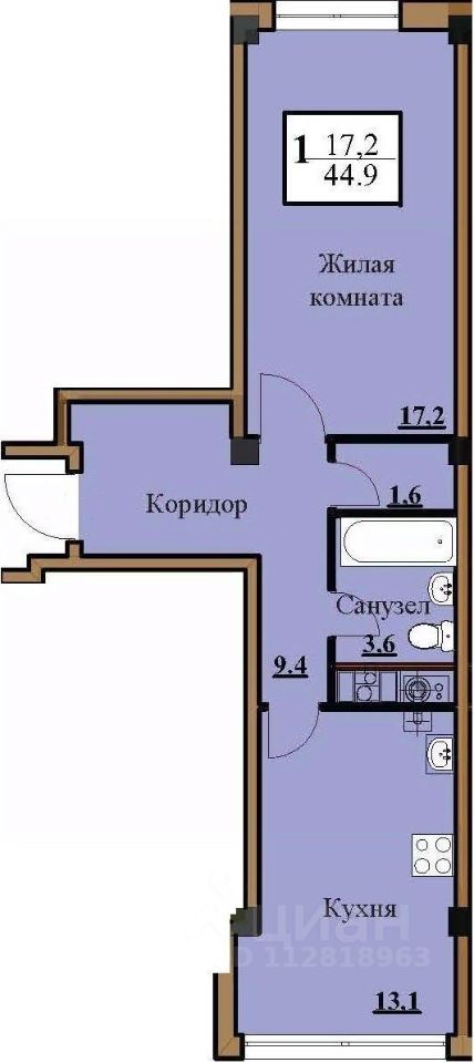 Продается 1-комн. квартира, 44,9 м²