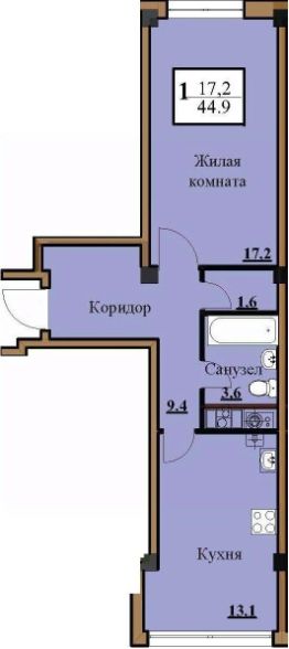 Общая площадь44,9 м²