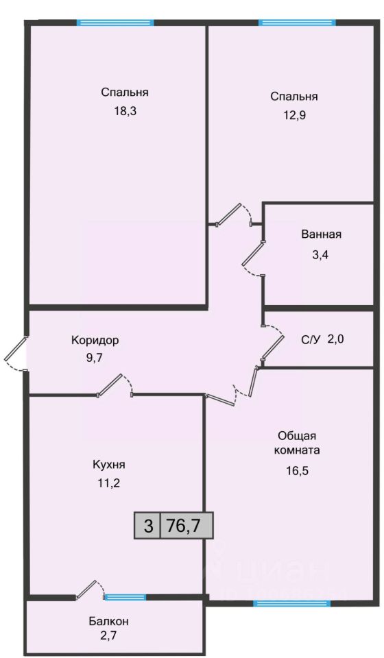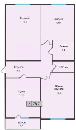 76,7 м²