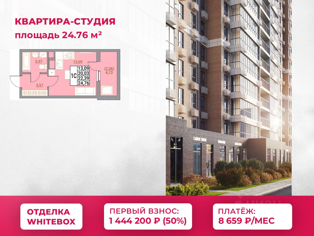 Общая площадь24,76 м²