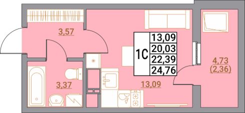 Общая площадь24,76 м²