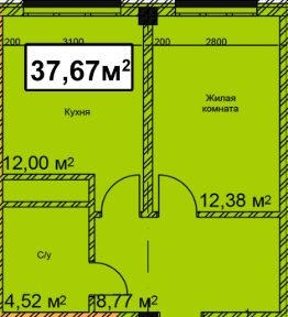 37,67 м²