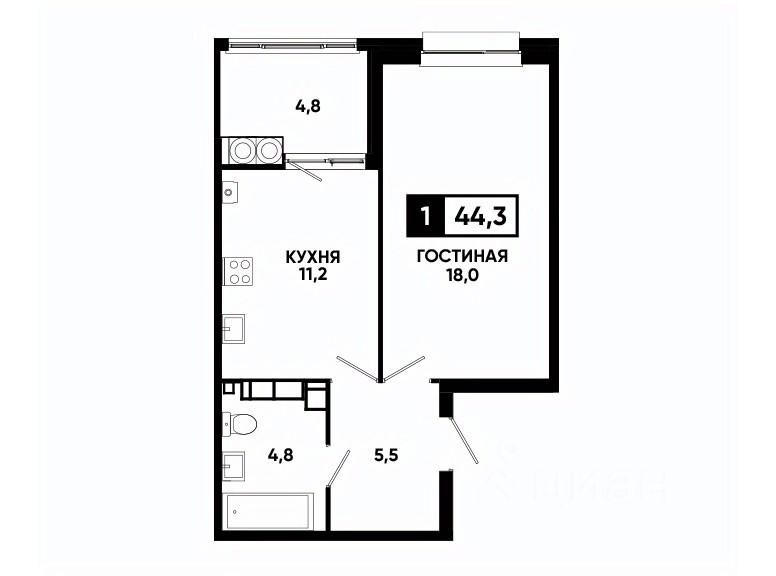 Общая площадь44,3 м²