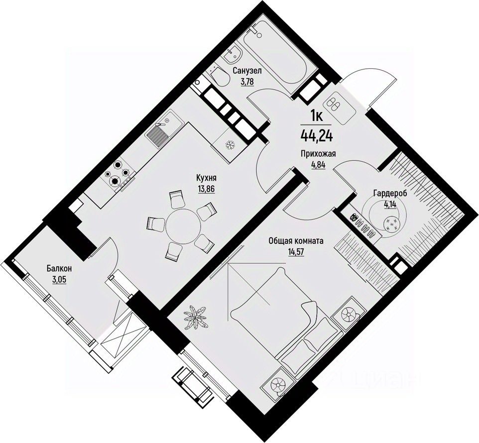 Общая площадь44,24 м²