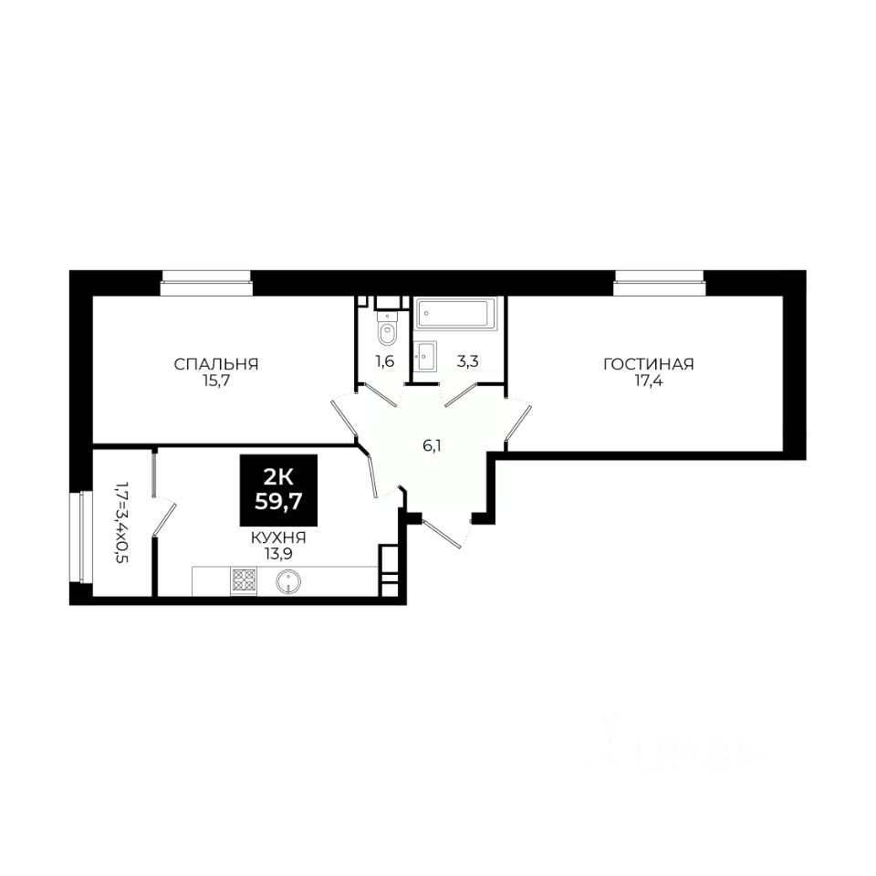 Общая площадь59,7 м²