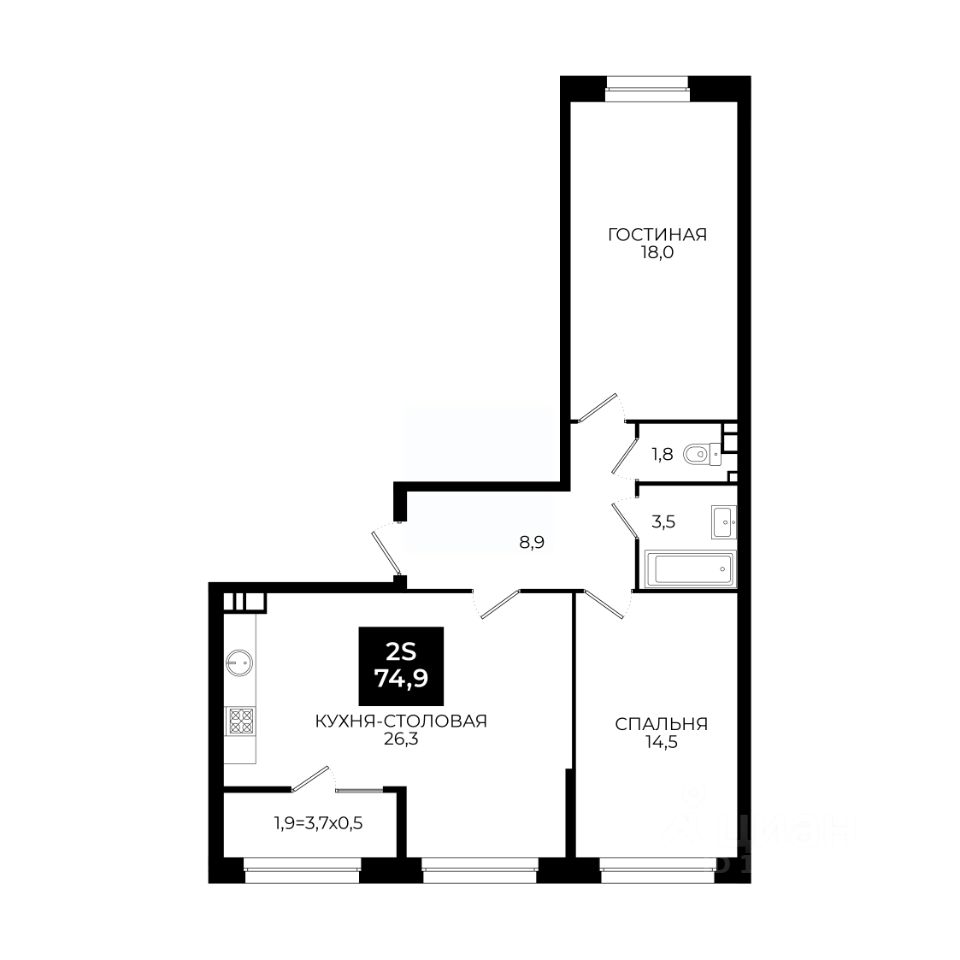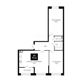 Общая площадь74,9 м²