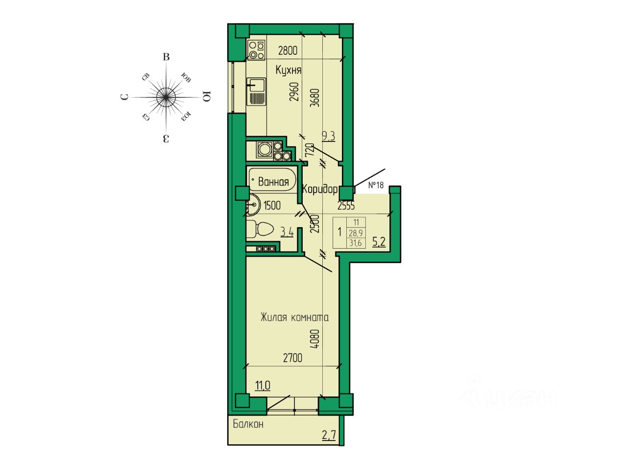 • Высота потолков 2,7 м