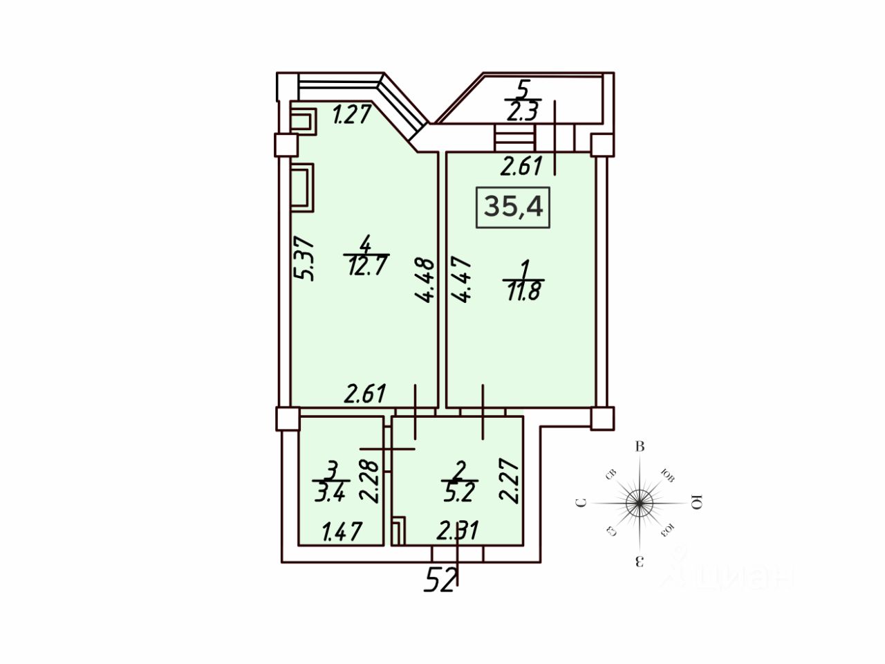 Общая площадь35,4 м²