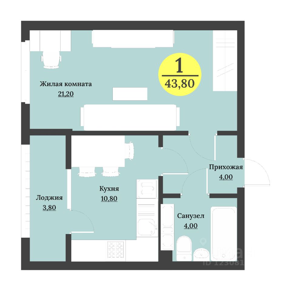 43,8 м²