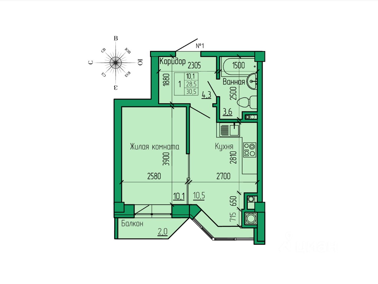 • Высота потолков 2,7 м