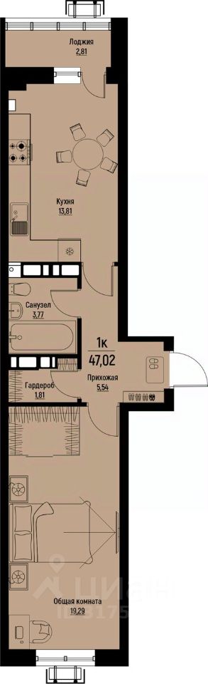 Общая площадь47,02 м²