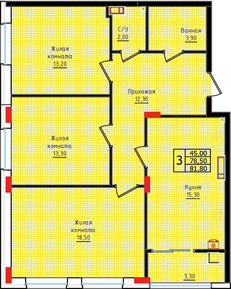 Новая 3 комнатная квартира 43 на 2 этаже от застройщика. СРОК СДАЧИ ДОМА: 3 квартал 2026 года. Чистовая отделка White Box.