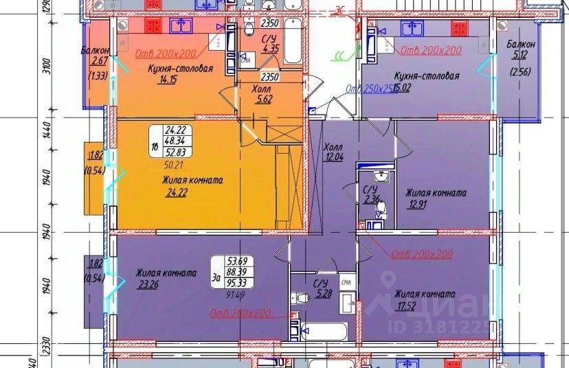 Предчистовая отделка, 3 раздельные комнаты, балкон, потолки 3м, шикарные подъезды.