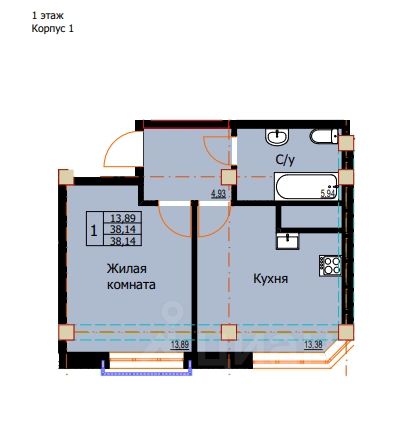 Продаётся 1-комнатная квартира в строящемся доме (Корпус 1), срок сдачи: II-кв. 2027, общей площадью 38.14 кв.м., на 1 этаже. Новый жилой комплекс "по ул. Гаевского" от застройщика "СЗ Золотая Корона" расположен по адресу: г. Ессентуки, улица Гаевского.