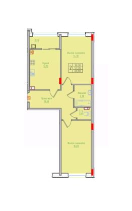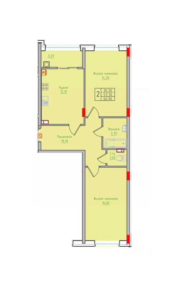 Общая площадь60,9 м²