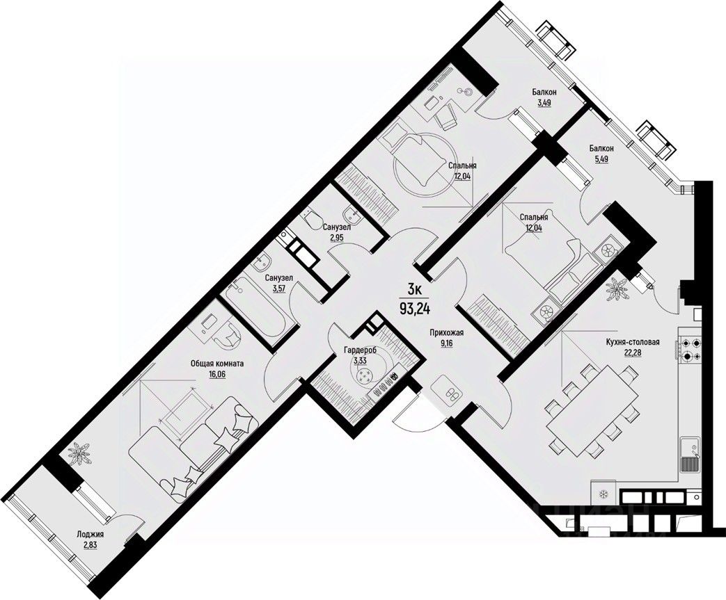 Общая площадь93,24 м²