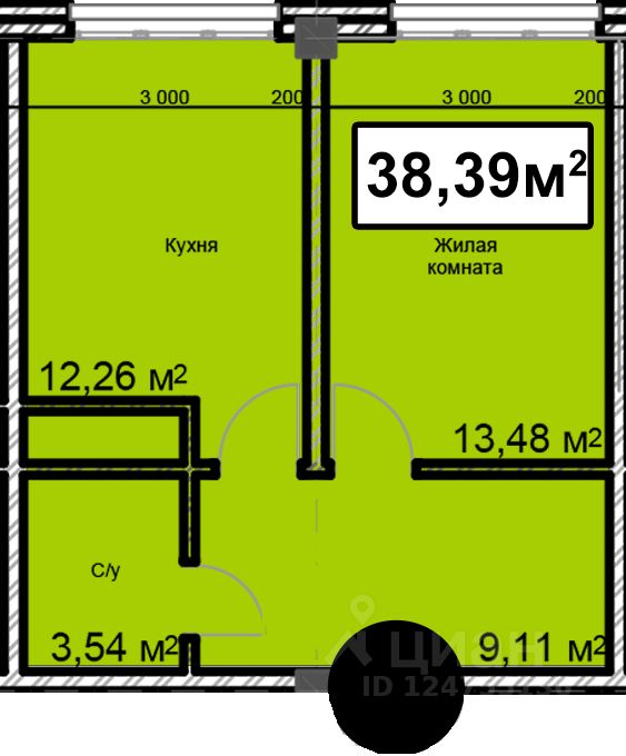 Общая площадь38,39 м²