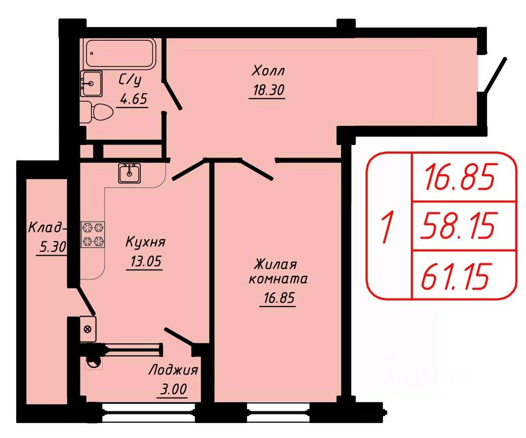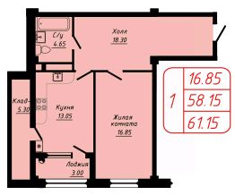 Продаётся 1-комнатная квартира в строящемся доме (3 этап), срок сдачи: III-кв. 2027, общей площадью 61.15 кв.м., на 5 этаже.