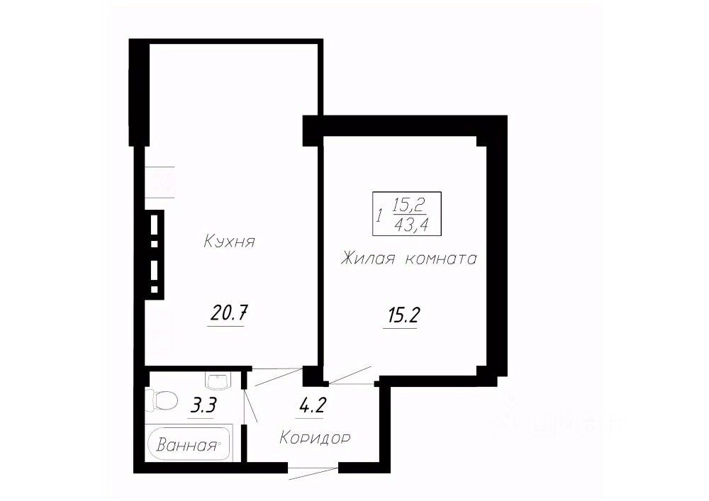 Общая площадь43,4 м²