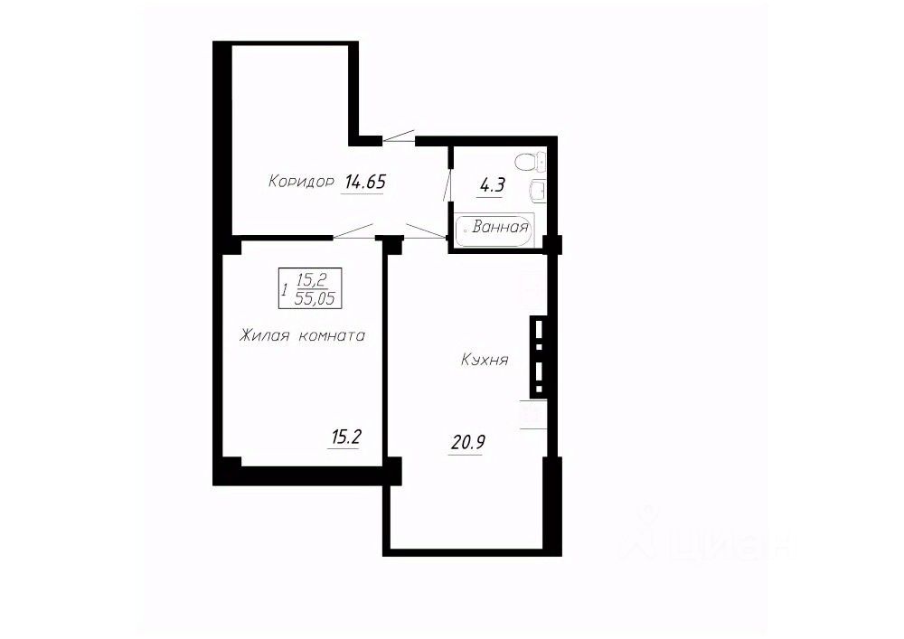 Общая площадь55,05 м²