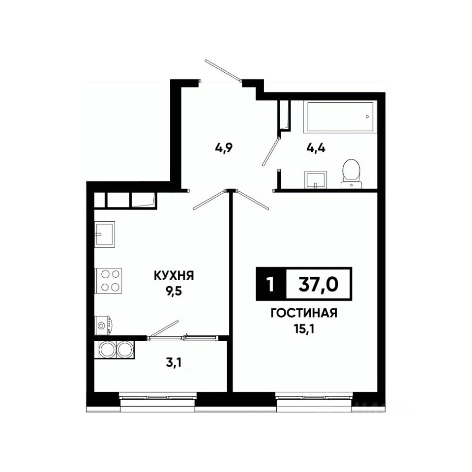 Общая площадь37 м²