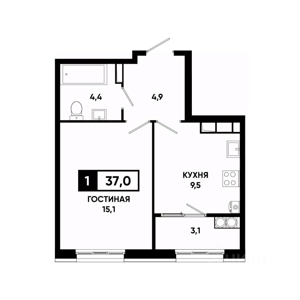 Общая площадь37 м²