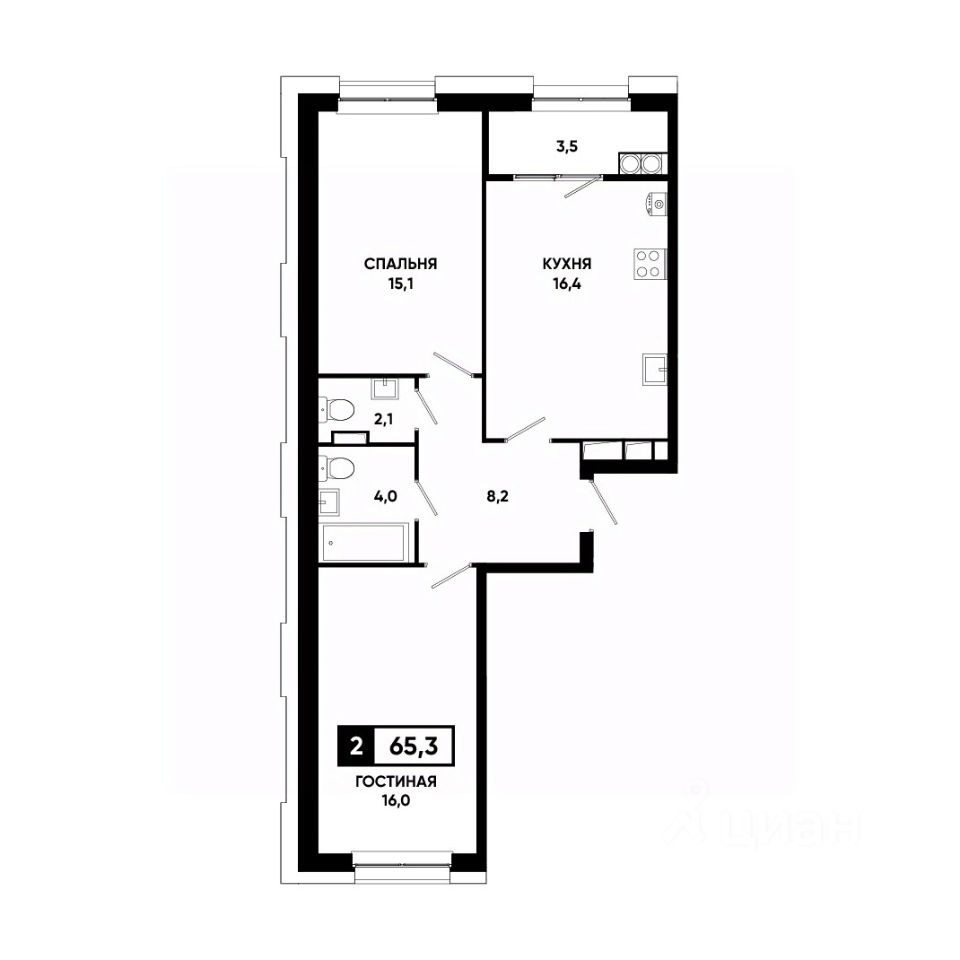 Общая площадь65,3 м²