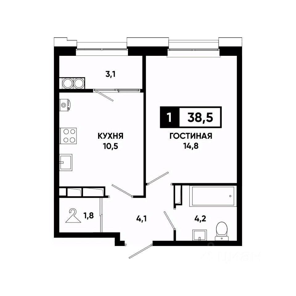 Общая площадь38,5 м²