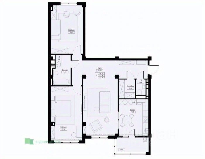 Общая площадь97,3 м²