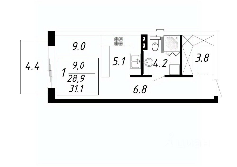 Общая площадь31,1 м²