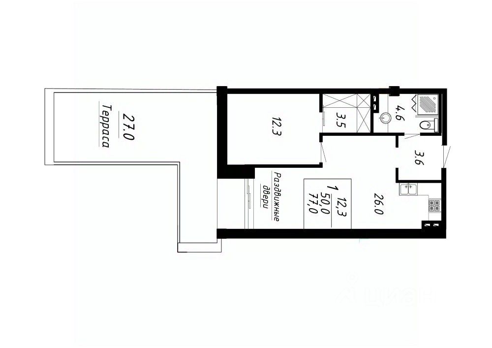 Продается 1-комн. квартира, 77 м²