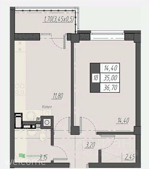 Общая площадь36,7 м²