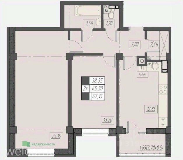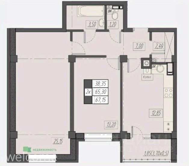 Общая площадь67,15 м²