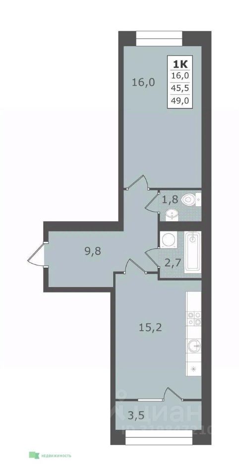 Площадь кухни15,2 м²