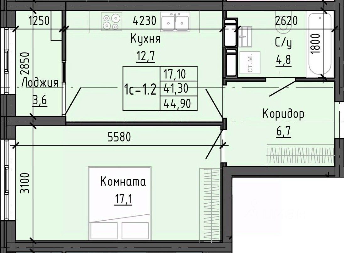 17,1 м²